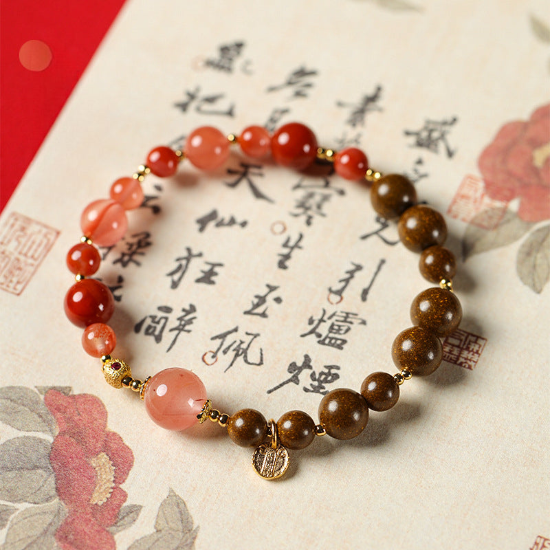 (Wealth and heath) Nanhong agate five-way God of Wealth Chinese herbal medicine Hexiang beads Feng Shui healing bracelet